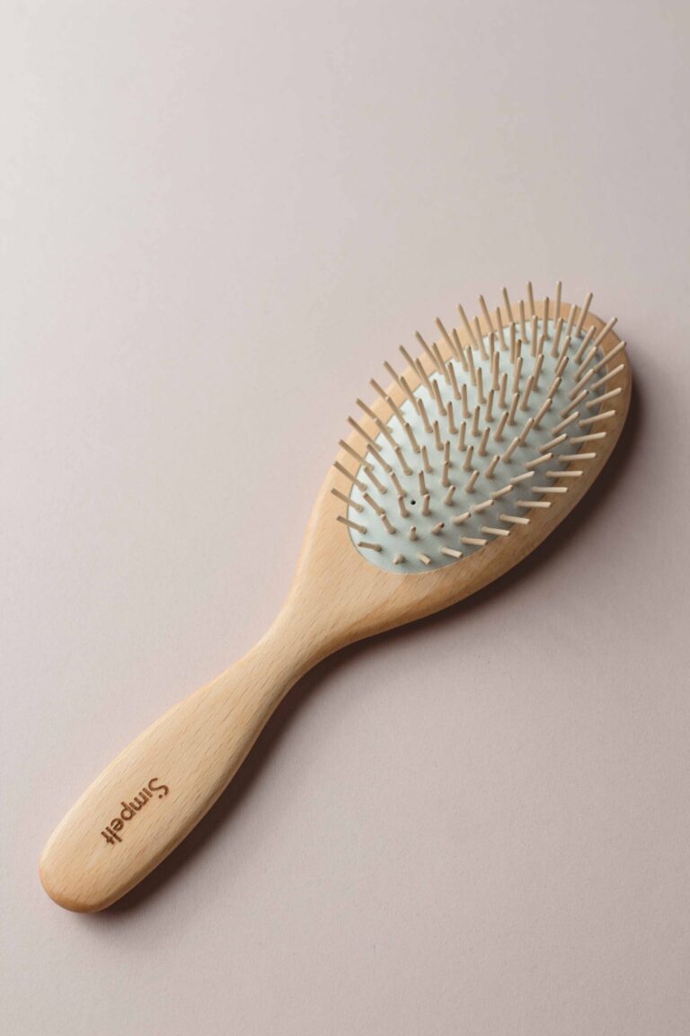 Simpelt hårbørste i træ er en smuk børste i lyst, certificeret bøgetræ med en pude af naturgummi.Børsternes knopper masserer blidt hovedbunden, der stimulerer blodcirkulation og styrker hårrødderne. Efter børstning efterlades håret glasfuldt – men ikke fedtet. Træknopperne “trækker” de naturlige fedt fra hovedbunden ud i hårstrået.